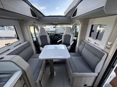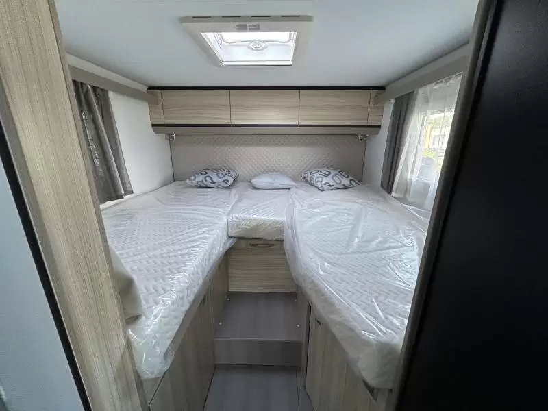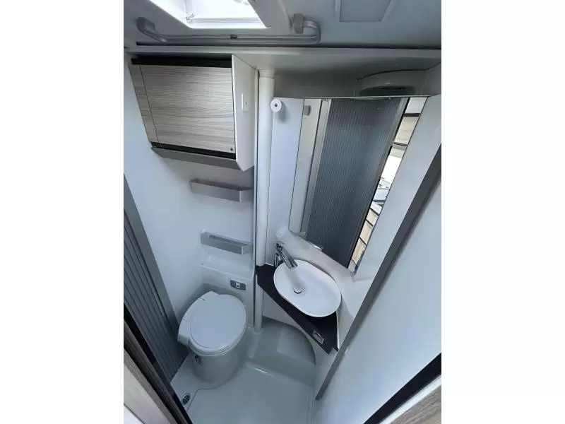 De aparte bedden bieden een makkelijke instap en een slaapgelegenheid voor 2 personen. U kunt zich heerlijk opfrissen bij de wastafel in de badkamer. Daar is ook een cassettetoilet ingebouwd. Er is bovendien een doucheruimte in de camper, zodat u van uw eigen douche gebruik kunt maken.
