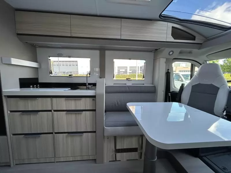 In de luxe uitgeruste keuken van deze Adria camper vindt u zelfs een afzuigkap voor de afvoer van kookluchtjes en overtollige warmte. Voor een snelle toevoer van warm water is er een 10 liter boiler aanwezig. De ingebouwde koelkast (149 liter) met vriesvak is uitgevoerd in een ruime uitvoering.