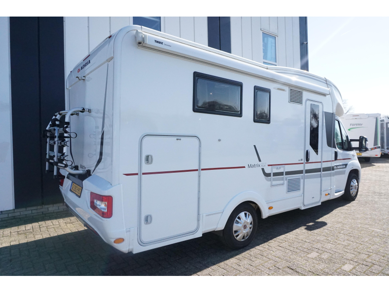 Deze camper is voorzien van een televisie zodat u ook tijdens uw vakantie televisie kunt kijken. Door de hordeur, waarmee deze camper is uitgerust, houdt u vliegen en andere insecten buiten de deur. Met de geplaatste zonnepanelen verlaagt u niet alleen de energiekosten, maar bent u ook nog eens milieuvriendelijk bezig. Verder ontbreekt het u aan niets, want de afwerking van deze Adria Matrix Plus bestaat ondermeer uit een vaste afvalwatertank, indirecte verlichting, een televisiebeugel en een lader.