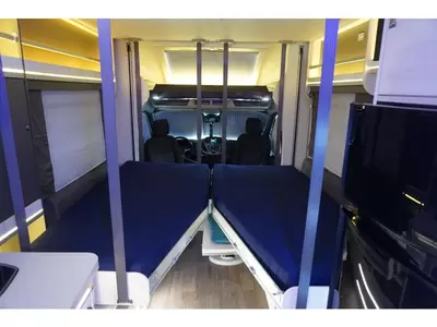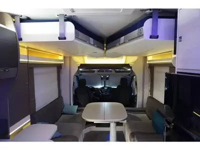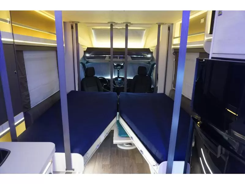 Het queensbed dat vrijstaat van de wanden geeft het gevoel van luxe en ruimte. Een handige ruimtewinner is het tweepersoons hefbed, dat zich boven de zitgroep bevindt. In de 2 aparte bedden heeft ieder zijn eigen slaapplek. In de comfortabele badkamer van deze camper vindt u behalve een wastafel ook een ingebouwd cassettetoilet. Wilt u zich onderweg opfrissen? Dat kan gezien de camper voorzien is van een douchecabine.