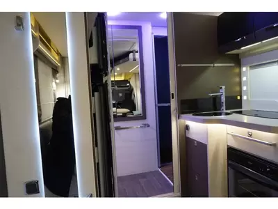 De centraal geplaatste middendinette biedt volop gelegenheid om gezellig samen te zitten. Centraal in de camper bevindt zich de complete middenkeuken. De 10 liter boiler, die in de camper is ingebouwd, voorziet u snel van warm water. De XL koelkast (175 liter) met vriesvak biedt voldoende ruimte voor heel uw voorraad.