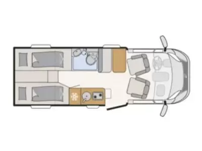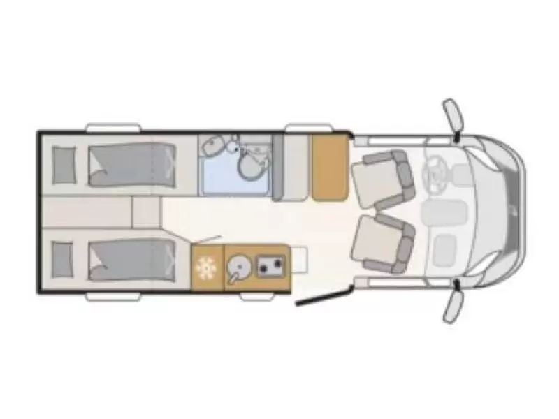 Slapen doet u op de 2 aparte bedden, die borg staan voor extra ruimte en een makkelijke instap. Deze camper beschikt over een badkamer. Hierin bevindt zich een wastafel en ingebouwd cassettetoilet. Wilt u zich onderweg opfrissen? Dat kan gezien de camper voorzien is van een douchecabine.
