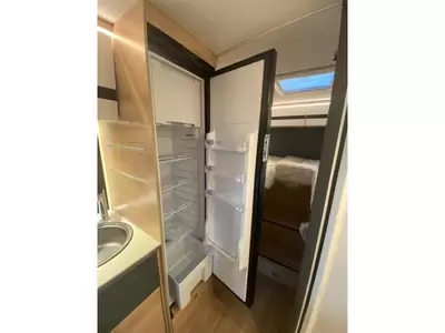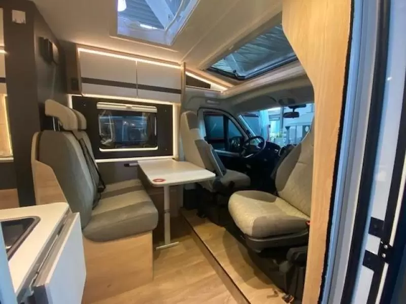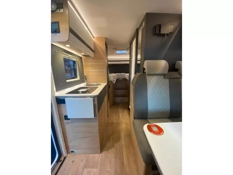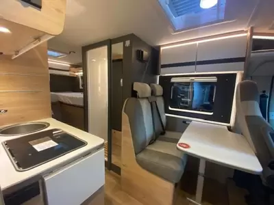 Centraal in de camper bevindt zich de gezellige middendinette. De complete keuken is in het midden van de camper geplaatst. Voor een snelle toevoer van warm water is er een boiler aanwezig.