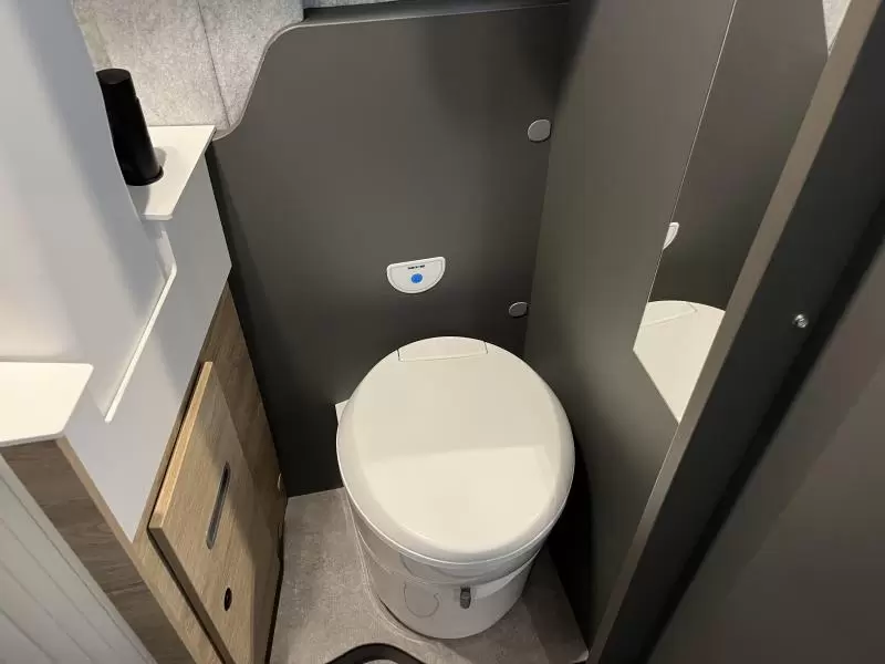In de comfortabele badkamer van deze camper vindt u behalve een wastafel ook een ingebouwd cassettetoilet. Er is bovendien een doucheruimte in de camper, zodat u van uw eigen douche gebruik kunt maken.