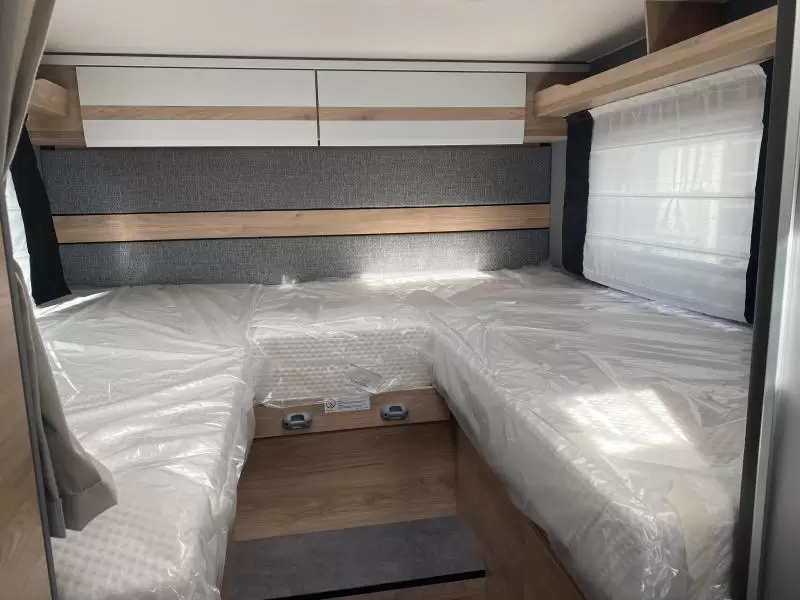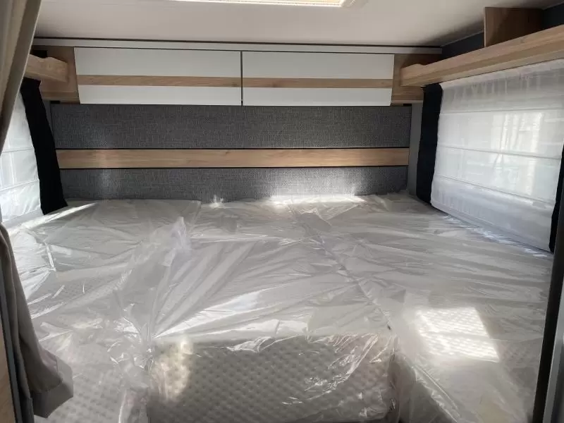 Van vliegen en andere insecten heb je in deze camper, dankzij de hordeur, geen last. De afwerking van deze volwaardige camper wordt verder mede bepaald door de vaste afvalwatertank, de buitenlamp en de lichtmetalen velgen.