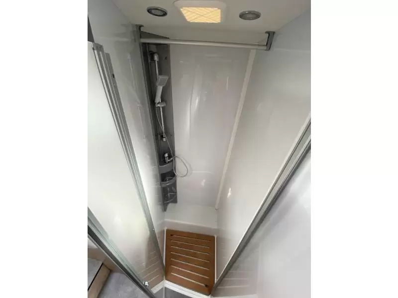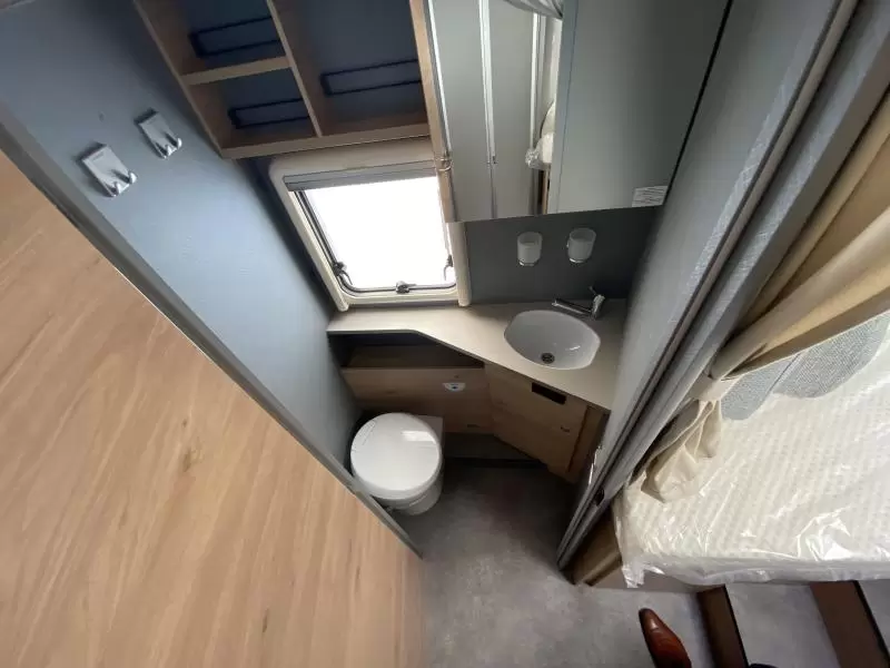 Er wordt veel ruimte bespaard door het gebruik van het tweepersoons hefbed boven de zitgroep. De aparte bedden waarmee de camper is uitgerust bieden een ruime slaapplek aan 2 personen. Behalve een cassettetoilet heeft de badkamer ook een wastafel, waar jij je heerlijk op kunt frissen. Ook is de camper uitgerust met een douchegelegenheid, zodat jij je ook onderweg heerlijk kunt opfrissen.