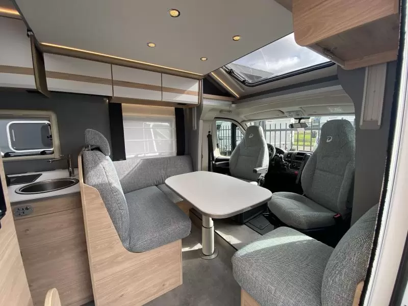 De camper is uitgerust met draaibare stoelen, cruise control, een achteruitrijcamera, cabineverduistering, stuurbekrachtiging en elektrisch bedienbare spiegels. De aandrijving komt voor rekening van een duurzame dieselmotor met een handmatige versnelling.