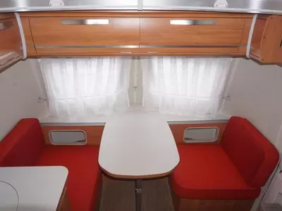 Verder beschikt de caravan over een kleine zit, die een prettige plek om rustig te lezen, te spelen of wat te drinken biedt. De ingebouwde koelkast (81 liter) met vriesvak is uitgevoerd in een ruime uitvoering.