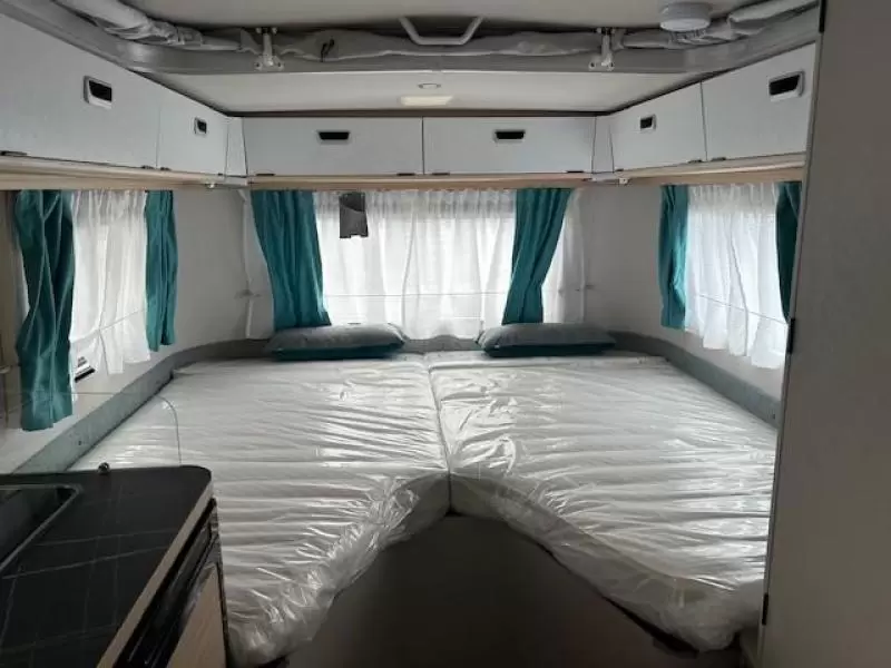 In de 2 aparte bedden in de caravan heeft ieder zijn eigen slaapplek. Deze caravan beschikt over een badkamer. Hierin bevindt zich een wastafel en ingebouwd cassettetoilet.