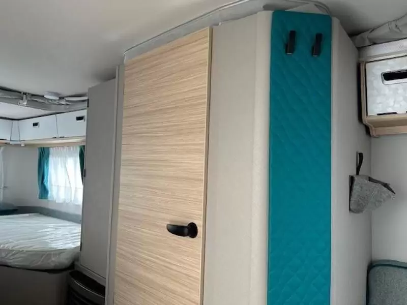 Door de hordeur, waarmee deze caravan is uitgerust, houdt u vliegen en andere insecten buiten de deur. Omdat de caravan is uitgerust met een stabilisatorkoppeling, heeft deze een rustiger weggedrag.