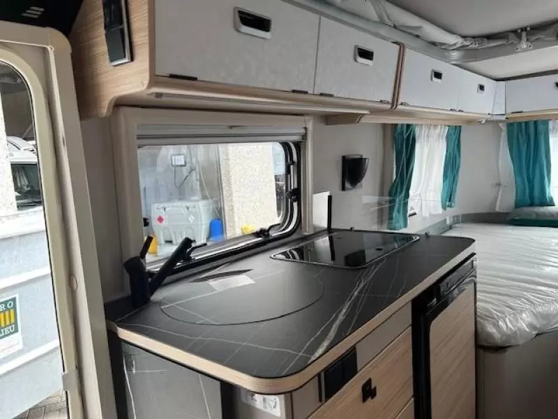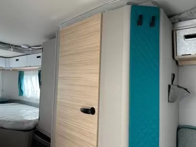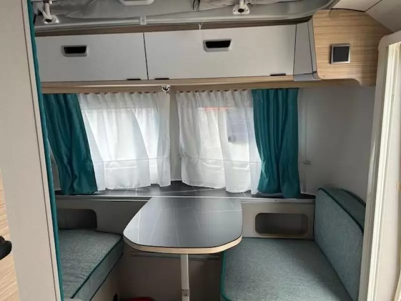 U vindt in de caravan onder meer een standaardzit, die naar wens kan worden omgebouwd tot slaapgelegenheid. De ingebouwde koelkast met vriesvak is uitgevoerd in een ruime uitvoering.