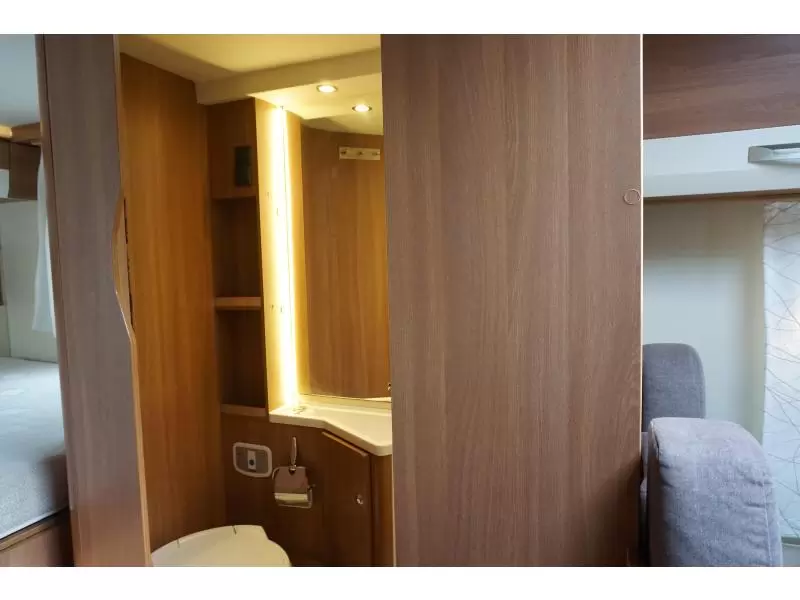 Middels het bovenbed heeft de camper een extra, plaatsbesparende slaapplek. U kunt zich heerlijk opfrissen bij de wastafel in de badkamer. Daar is ook een cassettetoilet ingebouwd. Ook is de camper uitgerust met een douchegelegenheid, zodat u zich ook onderweg heerlijk kunt opfrissen.