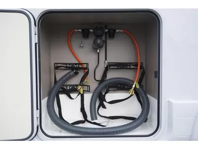 De audio-installatie van deze caravan zorgt voor vele uurtjes onbezorgd luisterplezier. Door de hordeur, waarmee deze camper is uitgerust, houdt u vliegen en andere insecten buiten de deur. Om er onafhankelijk en flexibel op uit te kunnen, zullen de vaste afvalwatertank, de indirecte verlichting, de leeslampjes en de buitenlamp u zeker van dienst zijn.
