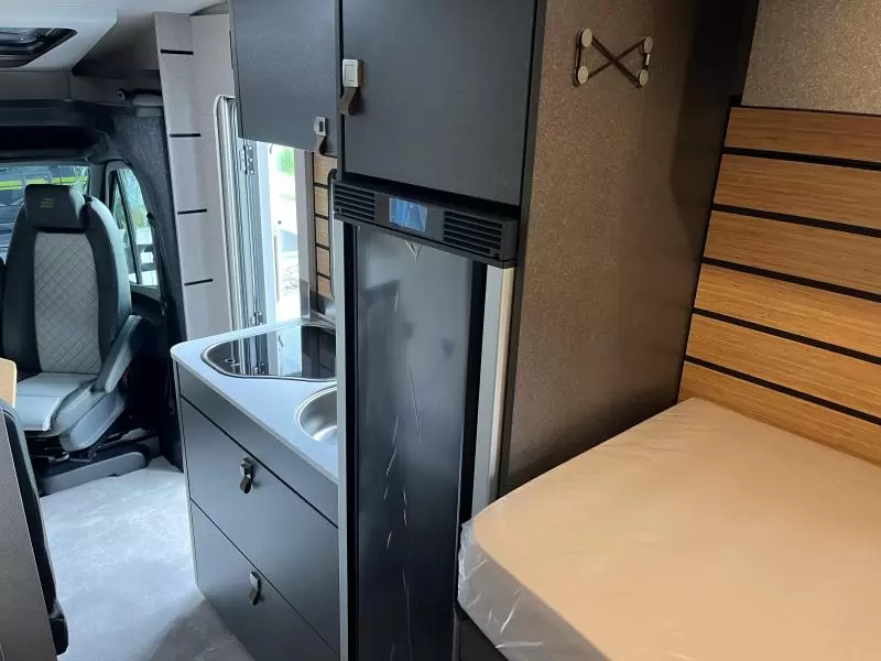 De camper is uitgerust met draaibare stoelen, cruise control, een achteruitrijcamera, een navigatiesysteem, centrale deurvergrendeling met afstandsbediening en cabineverduistering. De aandrijving komt voor rekening van een duurzame dieselmotor met een automatische versnelling.