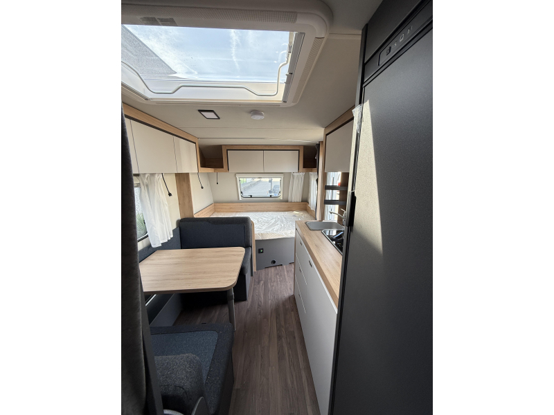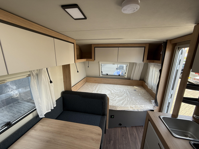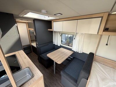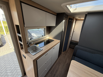 De gezellige en ruime middendinette vormt letterlijk en figuurlijk het middelpunt van de caravan. Het keukenblok is centraal in de caravan geplaatst. Er is een boiler aanwezig, die u van warm water voorziet.