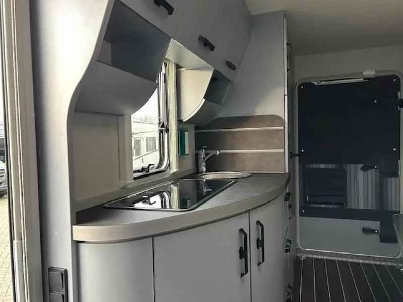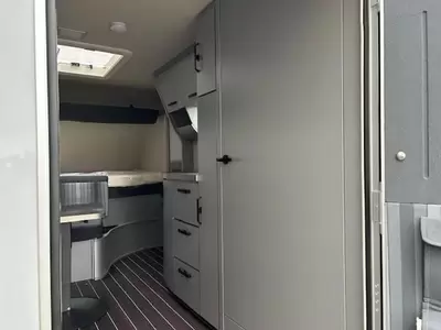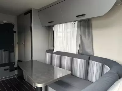 Een sfeervolle L-zit staat garant voor de nodige gezellige uurtjes. De caravan beschikt over een middenkeuken met voldoende bergruimte, die praktisch is ingericht en met een 3-pits kooktoestel, spoelbak en kraan is uitgevoerd. Er is een boiler aanwezig, die u van warm water voorziet.