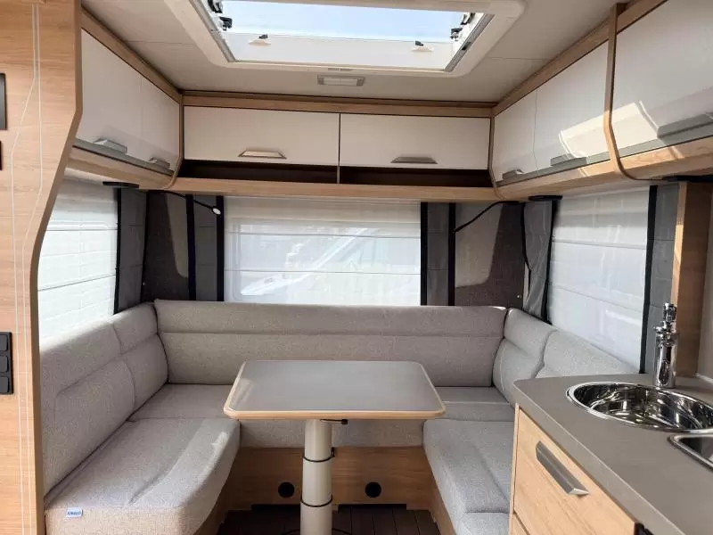 Door het grote dakluik beschikt u over een goede ventilatiemogelijkheid die ook meer daglicht in de caravan geeft. De verwarmde lucht wordt efficiënt verspreid via een ringverwarming.
