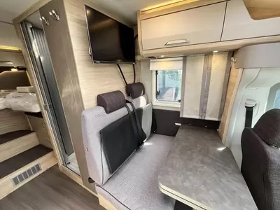 Dankzij de ingebouwde audio-installatie en aanwezige televisie, kunt u in de camper ook heerlijk naar muziek luisteren en uw favoriete tv programma's kijken. U zult in deze camper, dankzij de ingebouwde hordeur, minder last van insecten hebben. Tijdbesparend en makkelijk is de Thule cassetteluifel, welke snel is uit- en ingedraaid. De u geboden vrijheid en onafhankelijkheid wordt mede bewerkstelligd door de vaste afvalwatertank, de indirecte verlichting, de leeslampjes, de antennevoorbereiding, de televisiebeugel en de lader.