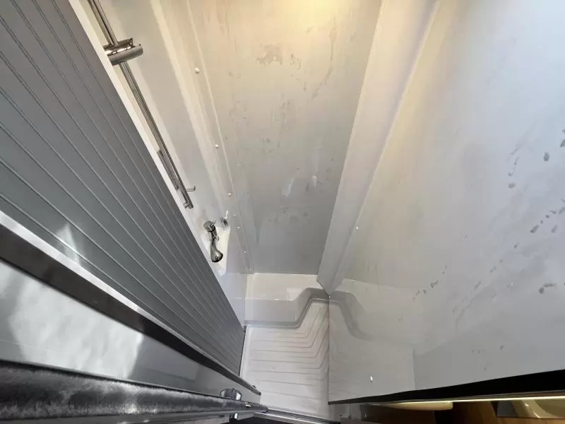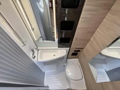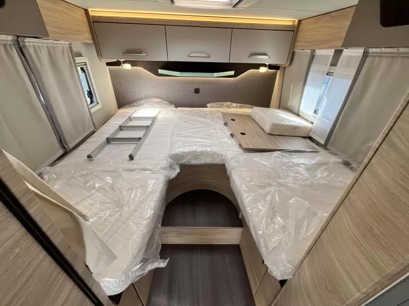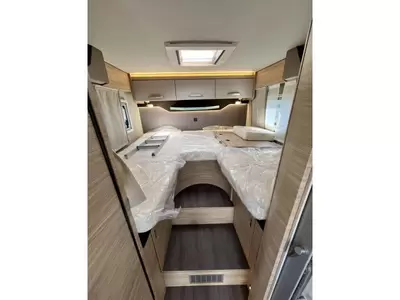 U kunt in deze camper genieten van een uitstekende nachtrust dankzij de lattenbodems en de traagschuimmatrassen op de bedden. Behalve een cassettetoilet heeft de badkamer ook een wastafel, waar u zich heerlijk op kunt frissen. Naast het slaapgedeelte bevindt zich ook de douchegelegenheid.