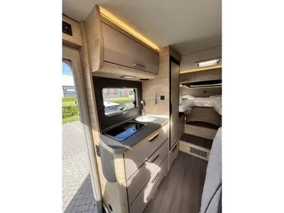 De handige standaardzit biedt niet alleen de nodige ruimte om te zitten, maar kan ook als slaapgelegenheid worden gebruikt. De keuken is in het midden van de camper gemonteerd. Er is een boiler aanwezig, die u van warm water voorziet.