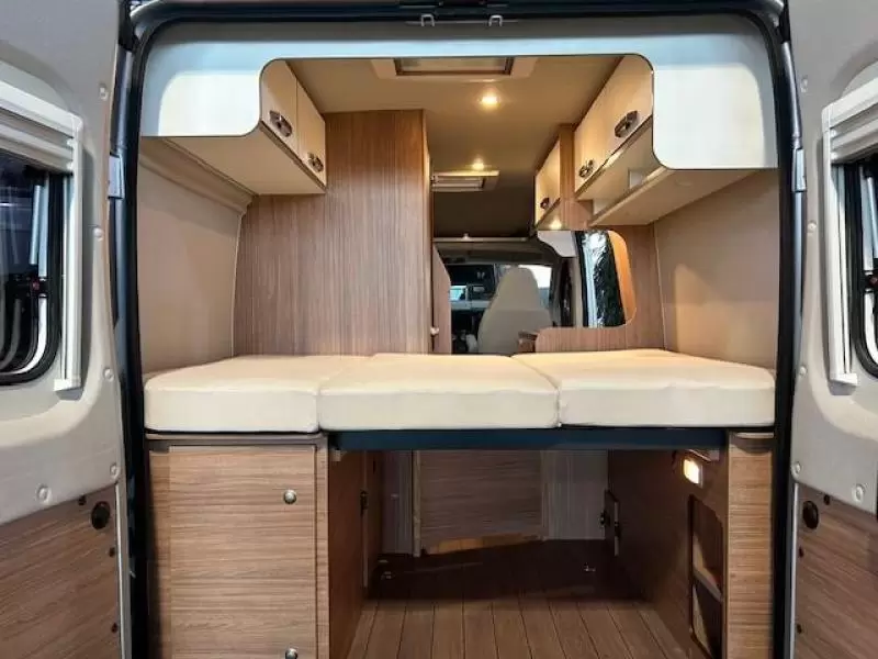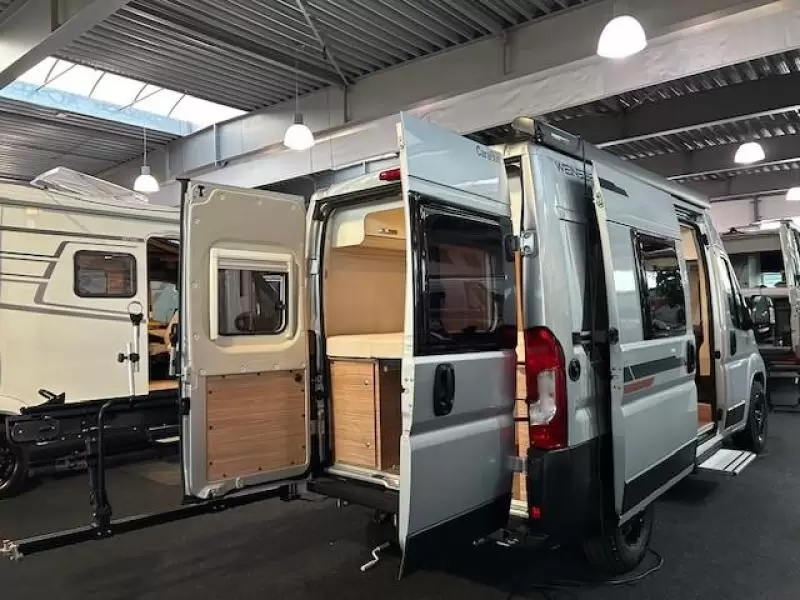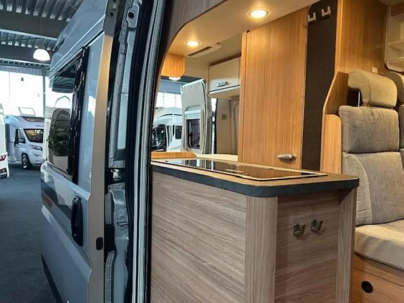 Met de ingebouwde audio-installatie kunt u in de camper naar uw favoriete muziek luisteren. De camper is uitgerust met een hordeur. Hierdoor houdt u insecten zoals muggen en vliegen buiten de camper. Het zijn de details die deze camper verder verrassend compleet maken. Denk hierbij aan de vaste afvalwatertank, de buitenlamp, de lichtmetalen velgen en de trekhaak.