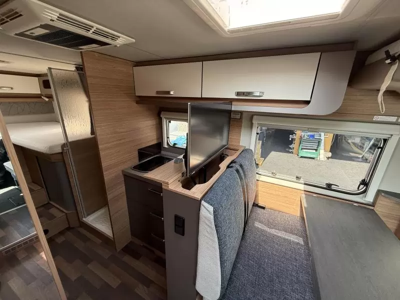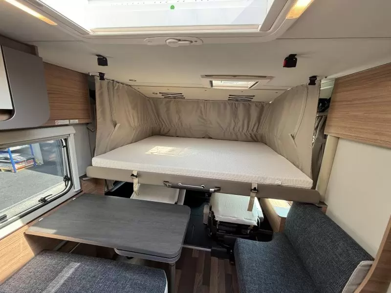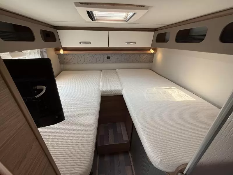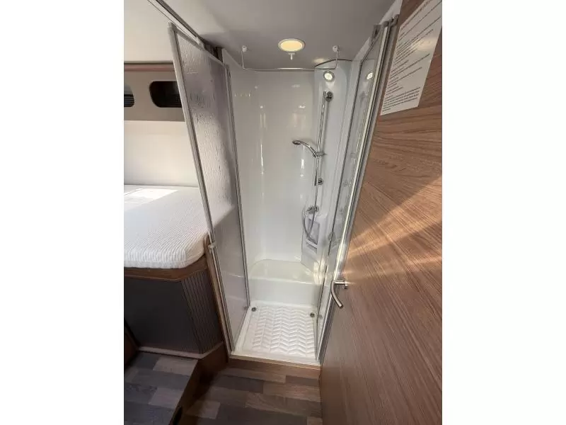 Het hefbed bespaart enorm veel ruimte en biedt plaats aan 2 personen. De aparte bedden waarmee de camper is uitgerust bieden een ruime slaapplek aan 2 personen. U kunt in deze camper genieten van een uitstekende nachtrust dankzij de lattenbodems en de traagschuimmatrassen op de bedden. In de badkamer kunt u zich heerlijk opfrissen bij de wastafel. Verder is er ook een cassettetoilet ingebouwd. Wilt u zich onderweg opfrissen? Dat kan gezien de camper voorzien is van een douchecabine.