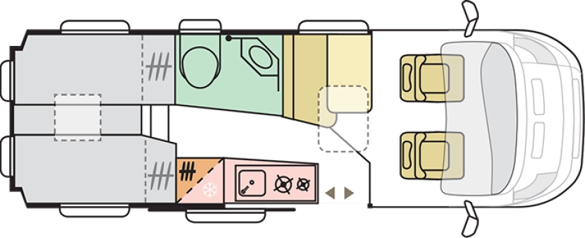 Ontworpen voor het perfecte thuis-gevoel. Een gebruiksvriendelijke en comfortabele buscamper, beïnvloed door eersteklas autostyling en een nieuw modern design.