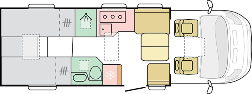 Ontworpen om het hele jaar mee te reizen. Half integraal campers in atrium stijl met exclusief SunRoof en moderne, open leefruimtes.