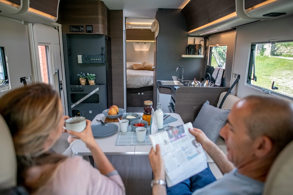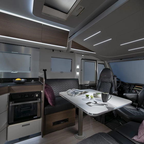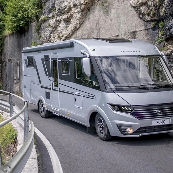 Reis het hele jaar comfortabel met de Adria Sonic: luxe integraal campers met eerste klasse rijcomfort. Moderne automotive stijl en keuze uit verschillende meubelsferen.