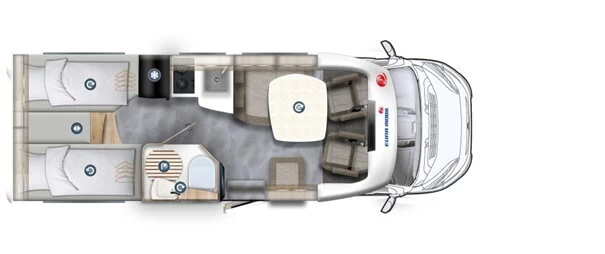 Het model biedt verschillende indelingen met comfortabele slaapplaatsen voor meerdere personen. Het hefbed boven de zithoek en de ruime bedden achterin zorgen voor een goede nachtrust, terwijl matrassen met 7 zones koudschuim comfort verhogen.