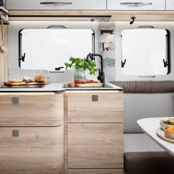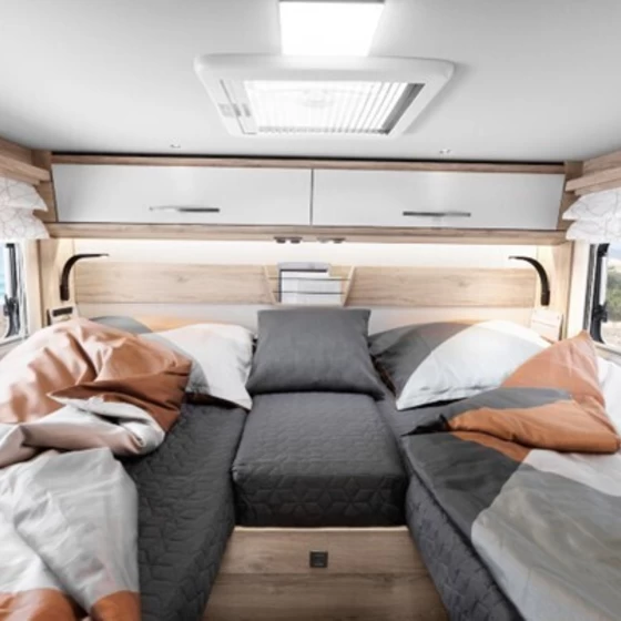 Binnenin combineert de Profila T MB een stijlvolle woonruimte met praktische indelingen, waardoor je zowel onderweg als op locatie een hoog woon- en leefcomfort ervaart. Door de diverse indelingen met achterste bedden en royale garage is deze camper flexibel inzetbaar voor koppels én kleine gezinnen.