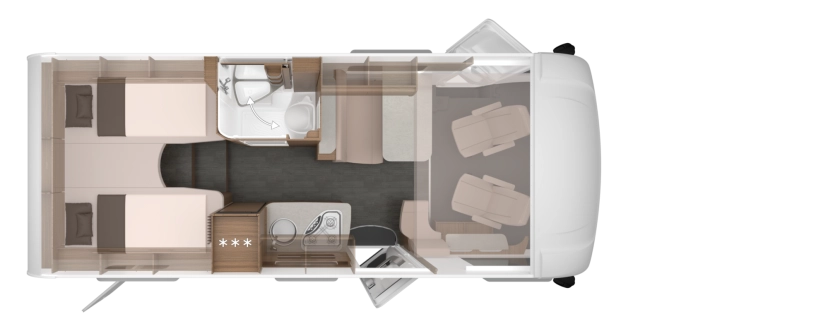 Een open ruimteconcept waarin je het ene hoogtepunt na het andere ziet. Stijlvol, ruim, sfeervol – dit model klopt in elk detail. Door het geïntegreerde hefbed voorin is deze camper ideaal voor vakanties met het hele gezin.