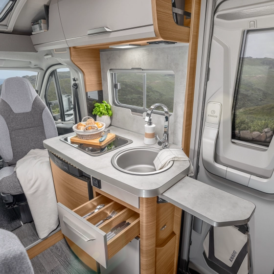 Groot genoeg voor het campergevoel, compact genoeg voor wendbaarheid op de weg. Slechts 220 cm breed en het lichtste voertuig in zijn klasse. Speciaal voor iedereen die een extra laadruimte kan waarderen.