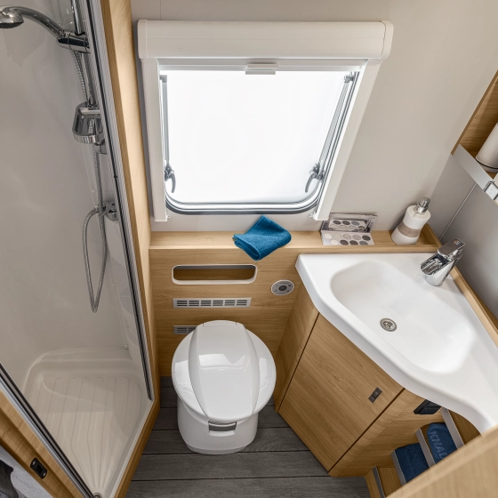 Compleet uitgerust en alles netjes georganiseerd. Zoveel mensen, zoveel wensen en zoveel verschillende badkamerindelingen. De Knaus Südwind is veelzijdig, maar je bent verzekerd van een complete en comfortabele uitrusting.